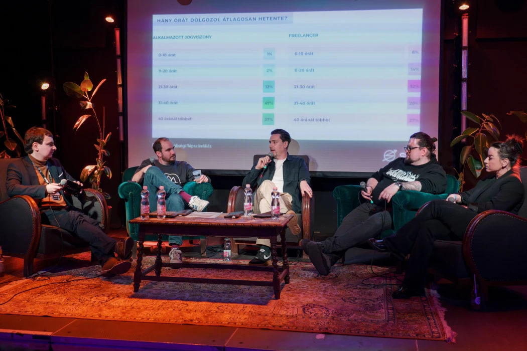 De a szabadúszóknál csak 27 százalék írta azt be, hogy 40 óránál többet dolgozik, az alkalmazottaknál viszont 37. Tehát, hogy úgy tűnik, hogy nem is dolgoztok többet.