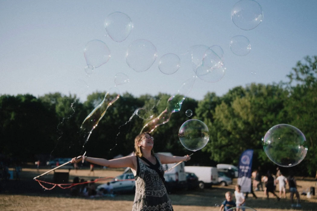Emellett volt még house dance tanulás, az árokszínpadon törzsi hastánc és dobolás, kortárs táncdarab és a „röpirádó” is, amely öt éve megy, egyre több érdeklődővel, illetve két színházi darab. Az említett röpi a játékosok mellett sok érdeklődőt is vonzott, egy megafonnal pedig még a tévés közvetítésekhez hasonló kommentárok is voltak mellé. Engem például az óriásbuborék-gyártás töltött el gyermeki örömmel, valakinek pedig a house jóga nyerte el a tetszését. „Szitáztunk, csináltunk kitűzőt, pólót és napszemüveget” – mesélte az egyik, nálunk is megforduló fesztiválozó, hol voltak még.